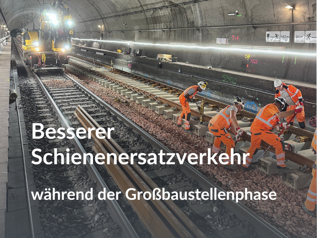 Die Kosten für SEV steigen aufgrund der umfangreichen Bauarbeiten deutlich an – von derzeit rund 10,5 Millionen Euro (2024) auf geschätzte 30,4 Millionen Euro im Jahr 2027. Die Region erhöht ihren Finanzierungsanteil für Ersatzverkehre im Zusammenhang mit S21 und DKS bis maximal zur Höhe der Einsparungen aus nicht gefahrenem Zugverkehr. Damit wird sichergestellt, dass trotz wachsender Belastung ein verlässliches SEV-Angebot aufrechterhalten werden kann und die Beeinträchtigungen für die Fahrgäste gemindert werden.