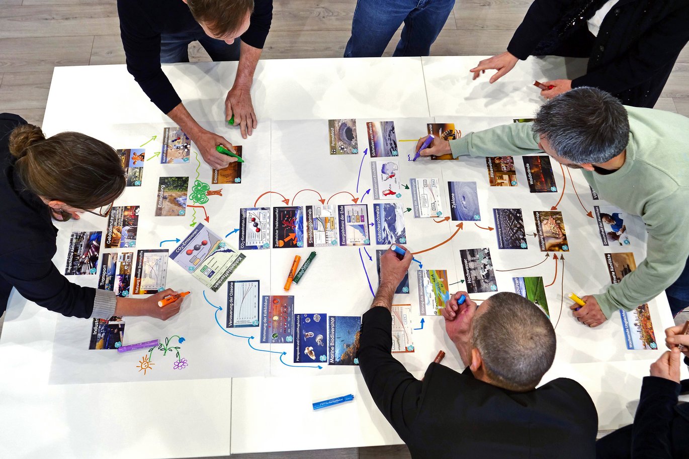 In einem interaktiven Spiel für Jugendliche (ab 13 Jahren) und Erwachsene dürft ihr Ursachen und Auswirkungen des Klimawandels verknüpfen, systemische Herausforderungen verstehen und gemeinsam Lösungen entwickeln.
